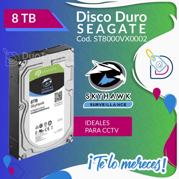 Características: Si tus requerimientos de almacenamiento son mayores, este disco duro para video vigilancia continua SkyHawk de Seagate con 8TB representa una gran elección. El HDD está optimizado para grabaciones sin perdidas gracias a su firmware “Image Perfect”, siendo capaz de obtener transmisiones de hasta 64 cámaras HD. Su diseño con componentes resistentes a manchas, garantiza su vida útil. Con capacidad de operar a temperaturas ambiente de 5°C a 70°C.