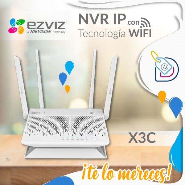 ¡Te lo mereces! El X3C es un potente 2 en 1, cuenta con una fuerte señal que traspasa las paredes y puede servir tanto de enrutador como de grabador de vídeo. Con un potente wifi y un fácil manejo mediante la aplicación EZVIZ *4 puertos de red integrados, compatibles con cámaras IP FHD y repetidores. *Conecte hasta 8 cámaras wifi y con cable (máx. 4 cámaras con cable) *Capacidad para instalar un (1) disco duro de hasta 6 TB de almacenamiento *Rango WIFI de hasta 100 metros. Garantía de 3 meses